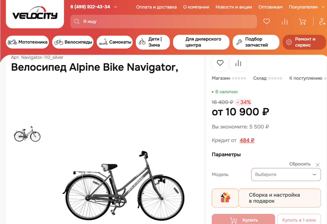 Стандартный вид странички сайта обычного велосипеда: