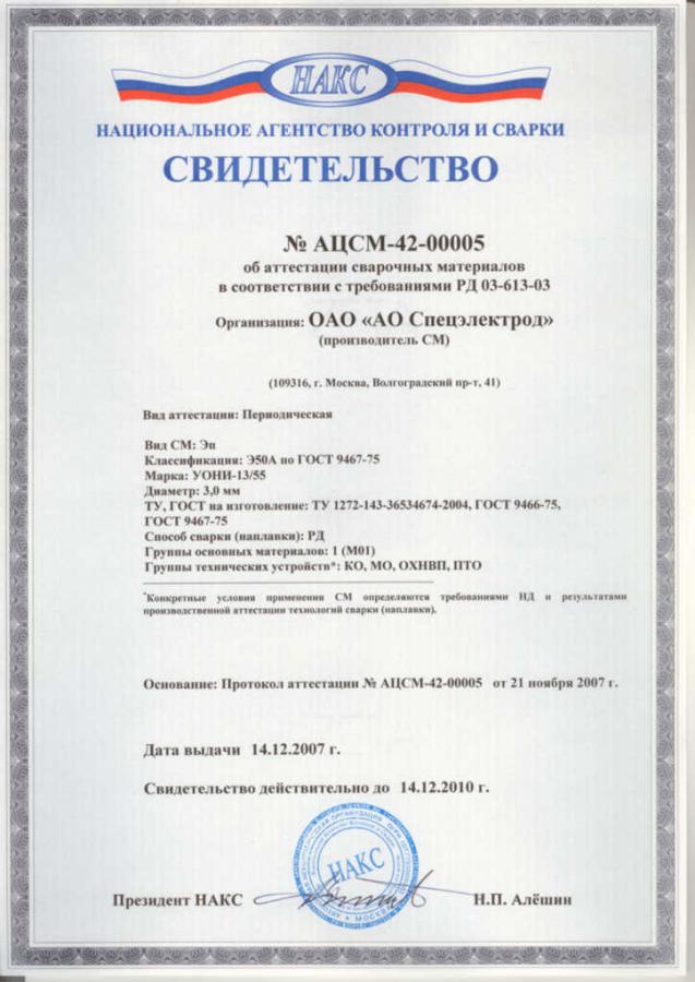 Электроды э42а сертификат