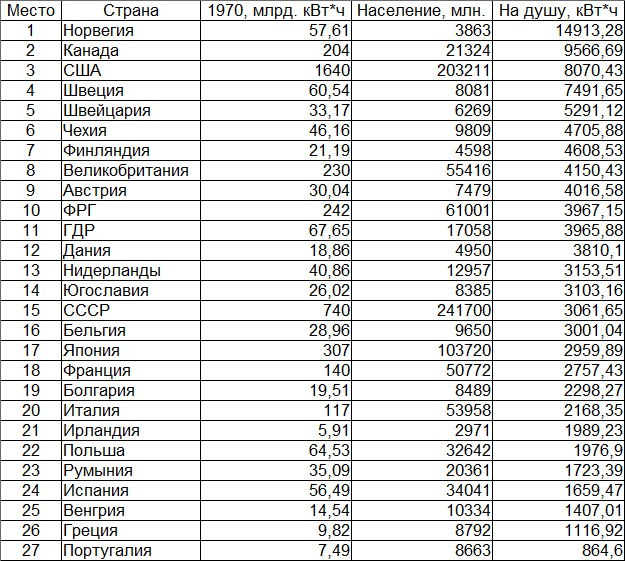 Место Российской Империи/СССР по выработке электроэнергии на душу населения