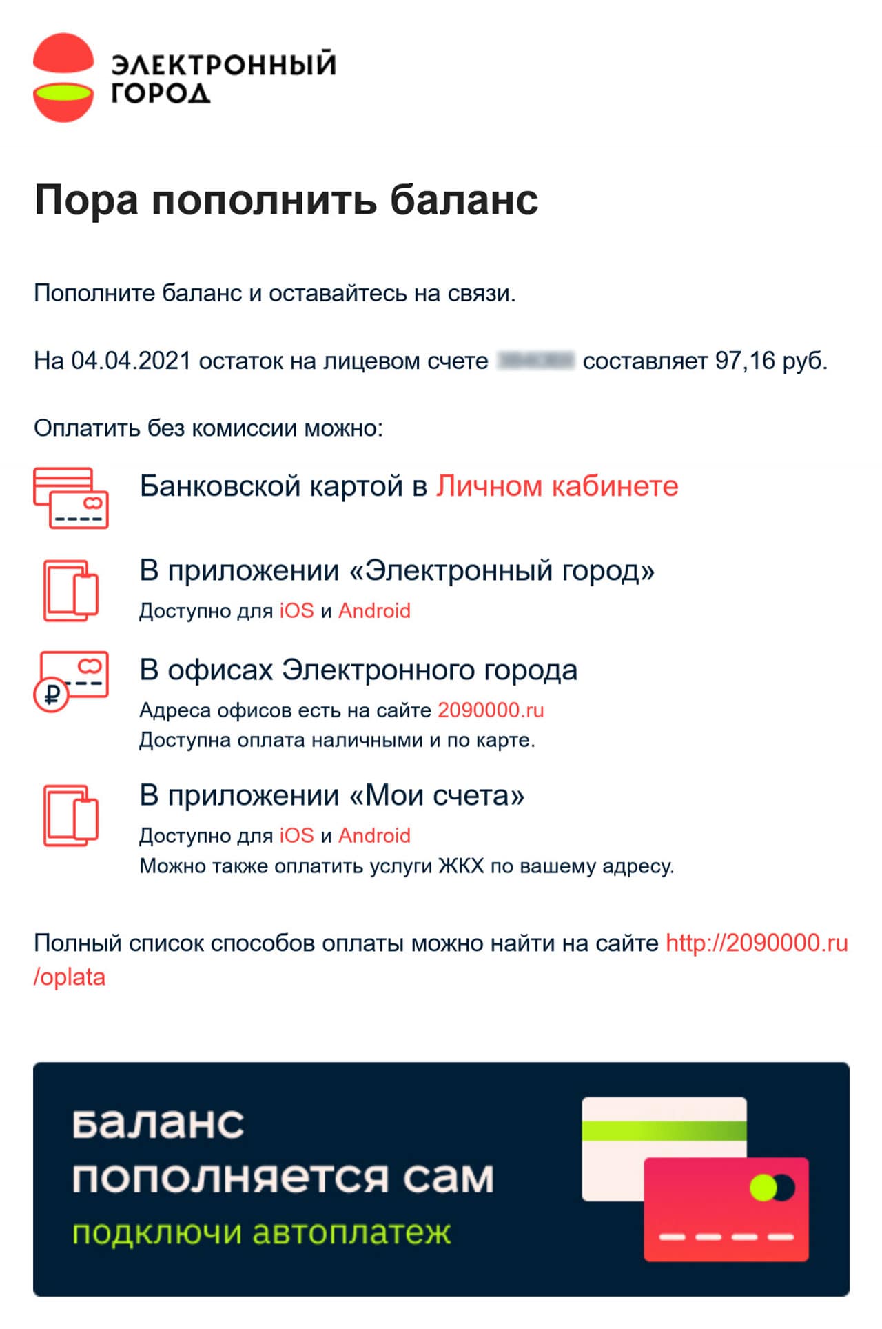Электронный город счета