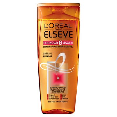 Купить Loreal Elseve Шампунь для волос, роскошь питания 6 масел 400мл в интернет-аптеке в Москве, низкие цены и официальная инструкция по применению, честные отзывы покупателей и фармацевтов о Loreal Elseve Шампунь для волос . . .