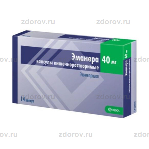 Эзомепразол - действующий компонент эманеры . Препарат нового поколения для лечения язвенных болезней органов ЖКТ . Сводит к минимуму выработку соляной кислоты в желудке, лечит воспалительные, эрозивные, язвенные заболевания . Лекарство выпускается в капсульном виде, в блистерах по 14 и 28 штук; содержит активный компонент весом 20 и 40 миллиграммов .