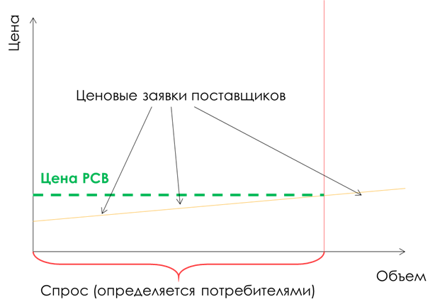 РСВ – рынок на сутки вперед - самый настоящий рыночный механизм спроса и предложения. Покупатели подают Системному оператору заявки на покупку энергии «завтра», а он определяет необходимый объем энергии на следующий день и распределяет нагрузку между генерирующими компаниями. Цена устанавливается как максимальная ценовая заявка поставщиков, которые обеспечивают прогнозный объем предложения, ее можно отслеживать здесь.