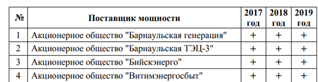 В итогах есть конкретно каждая электростанция – отобрана ли ее ценовая заявка на год (стоят “+” или “-“).