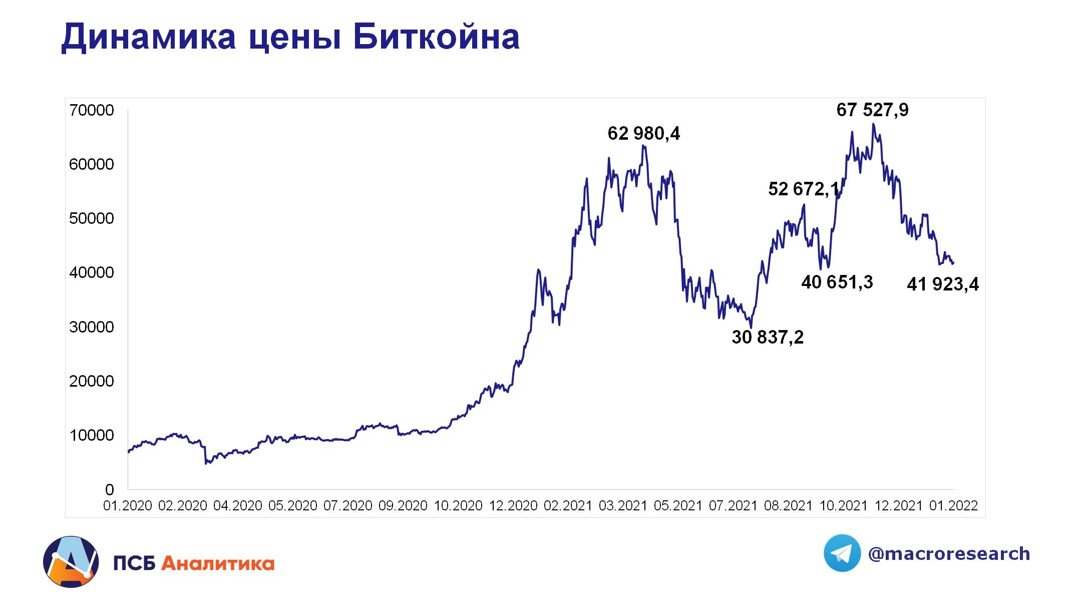 ПСБ АналитикаС ноября 2021 года курс биткоина заметно снижался, в добавок к этому над криптовалютами нависла еще одна угроза. В июле 2021 г. майнинг был запрещен в Китае (46% рынка). Фермы стали мигрировать в другие страны: Косово, Абхазию, Казахстан, Иран и северные государства. Однако в последнее время и в лояльных к майнингу странах вводятся запреты на такой вид деятельности.