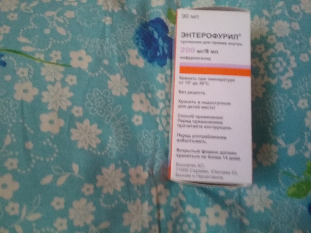 Энтерофурил суспензия для приема внутрь 200мг/5 мл, 90мл . Острая бактериальная диарея, протекающая без ухудшения общего состояния, повышения температуры тела, интоксикации . Применяется внутрь . Для дозирования используется дозировочная ложка объемом 5 мл, имеющая . . .