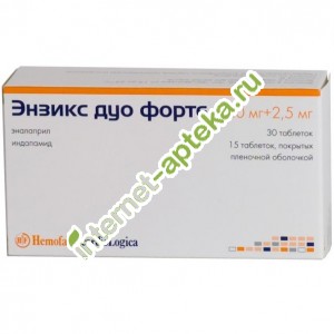 Энзикс дуо (Enzix duo), Гипотензивное комбинированное средство , описание, отзывы, цены на препарат, заказ в аптеках, состав, способ применения, Хемофарм (Сербия) .
