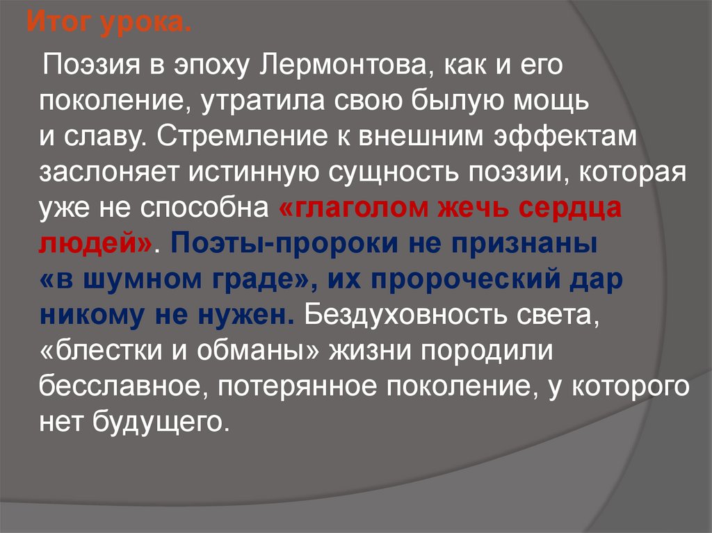 Эпитеты пророк лермонтов