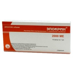 В 1 мл раствора препарата Эпокрин может содержаться 1000 МЕ, 2000 МЕ, 10 000 МЕ или 4000 МЕ альфа эпоэтина (человеческий рекомбинантный эритропоэтин) Дополнительные вещества: пента сесквигидрат цитрата натрия или дигидрат . . .