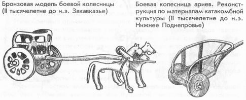 Продвижение арийских колесниц в зону классических древневосточных цивилизаций носило иной характер. Здесь не было массовых переселений народов, однако отчетливо ощущается влияние арийских боевых групп, военных специалистов с конями и на колесницах, которые динамизируют окружающие высокие цивилизации варварские народы и побуждают их к грабительским войнам и завоеваниям.