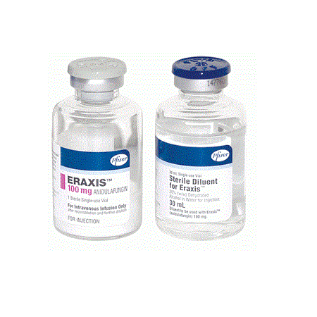 Препарат Эраксис ® следует восстанавливать водой для инъекций и затем развести только 0,9 % раствором натрия хлорида для инфузий или 5 % раствором декстрозы для инфузий .