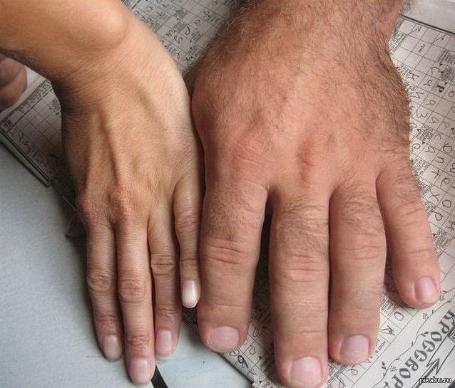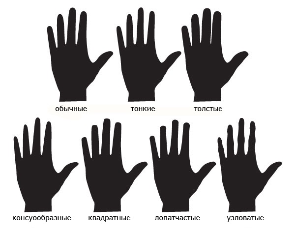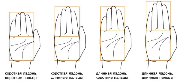 Различия рук в зависимости от соотношения длины пальцев и ладони: