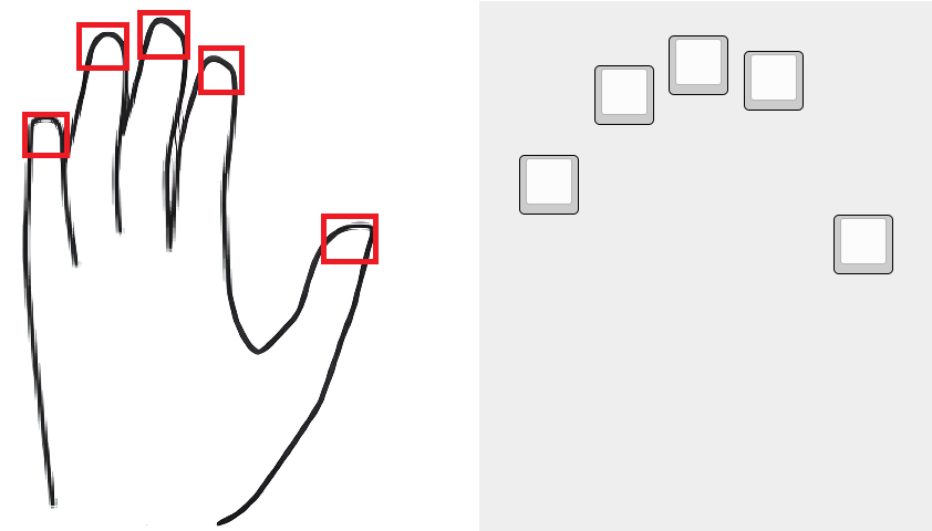 Как видно из рисунка выше, мы получили 5 позиций для ввода, объединив две руки, можно получить доступ к вводу 10 символов, но и этого видимо мало. Если рассматривать вопрос создания форм то важно учитывать не только физические ограничения взаимодействующих тел, но и уделить внимание самому процессу ради которого создаётся данный предмет.