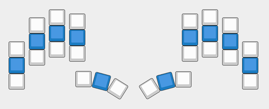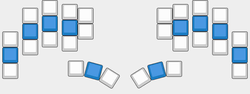 Именно данное положение рук можно считать основным в состоянии покоя, а также основным статичным положением при проектировании средств ввода, назовем эту позицию "домашней" позицией. Можно сказать что это идеальное положение с точки зрения физиологии рук и доступности к возможному функционалу, однако достаточно ли этого функционала?