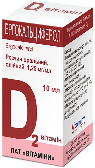 Эргокальциферол выпускается в 10 мл бутылочках темного цвета виде масляного раствора . Это необходимо, чтобы он сохранял свои свойства . Флакон помещают в картонную упаковку, где содержится инструкция по применению . Препарат необходимо хранить в прохладном месте при +2-+8°С . Другие формы выпуска d2 — таблетки, капсулы, драже и спиртовой раствор .