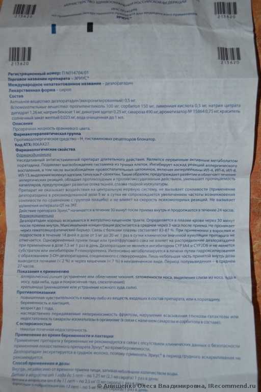 Эриус® — инструкция по применению, дозы, побочные действия . . .