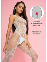 Боди-комбинезон эротичная сетка белая с интимным вырезом . . .
