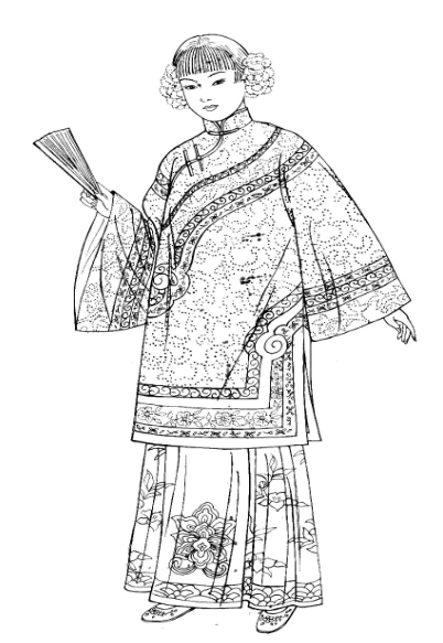 Эскиз и описание . . . когда левая часть халата или рубахи накладывается на правую, . . . Традиционная одежда для китаянки отличается от мужской лишь скромными дополнениями и акцентами .