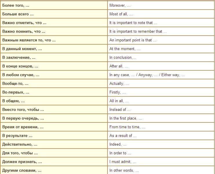 Клише для эссе (ЕГЭ, 11 класс) - английский язык, прочее