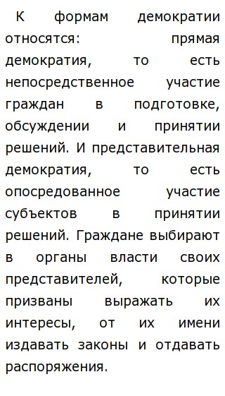 1 . Демократия в теории и на практике . Демократия - форма политической организации общества, основанная на признании народа в качестве источника власти, на его праве участвовать в решении государственных дел и наделении граждан достаточно широким кругом прав и свобод . . .