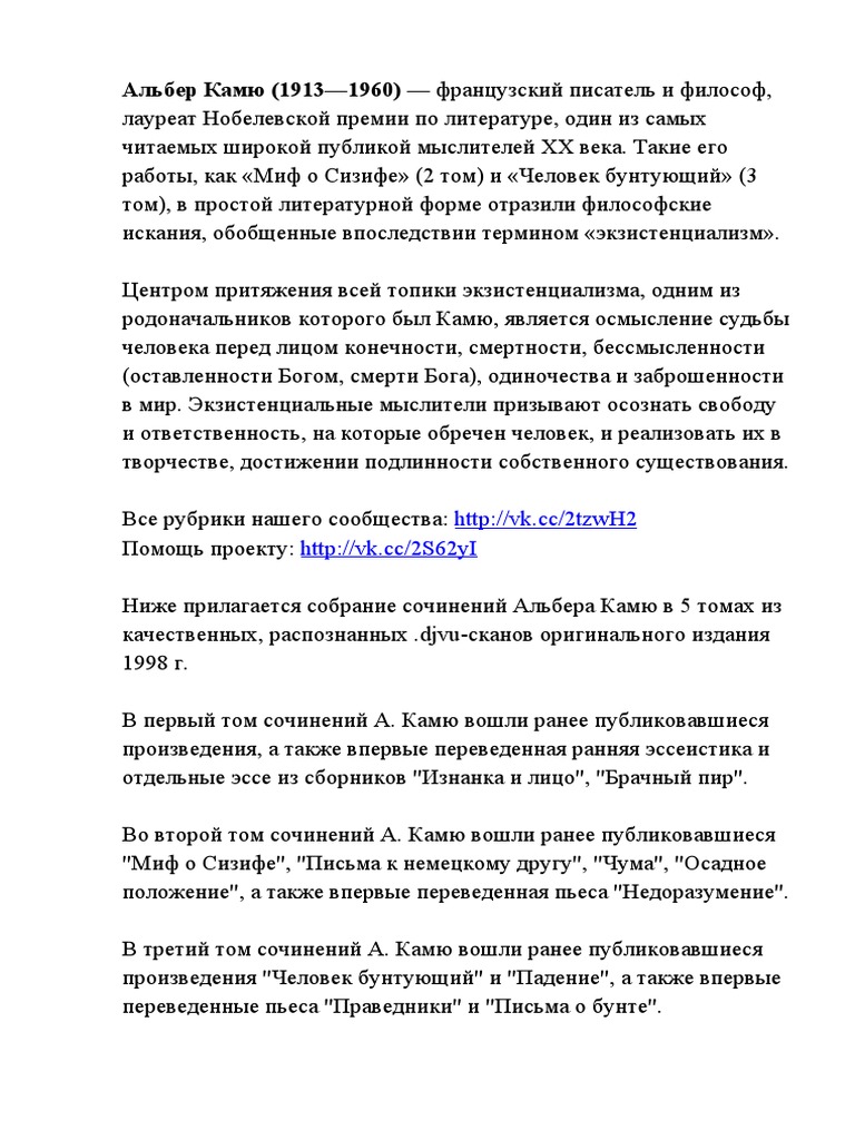 Эссе на тему О философии А . Камю - скачать бесплатно . . .