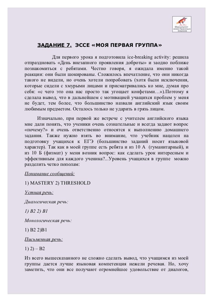 Моя первая педагогическая практика (эссэ), Эссе