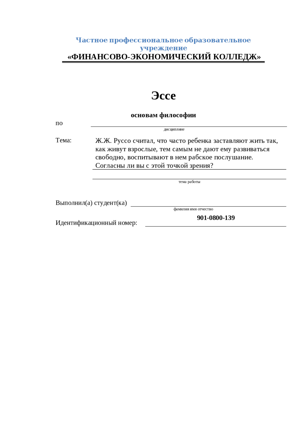 Эссе поФилософии дисциплине Тема:Ж .Ж .Руссо считал что часто ребенка заставляют жить так, как живут взрослые, тем самым не дают ему развиваться свободно …