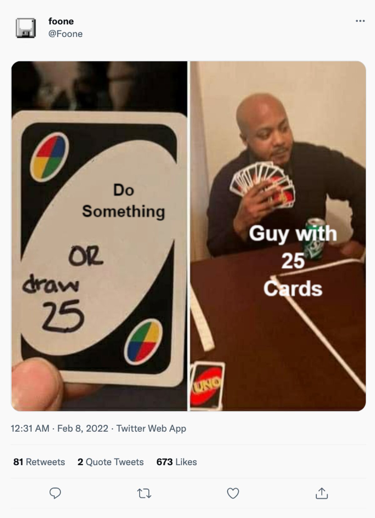 Но мем продолжал жить . Следуя своей формуле, где с неизменным результатом сравниваются два объекта, мем примерял на себя разные картинки . Как будто выбирая наряд для выхода в свет . Эти шутки появлялись на изображениях с Джокером, актёром Мадсом Миккельсеном .