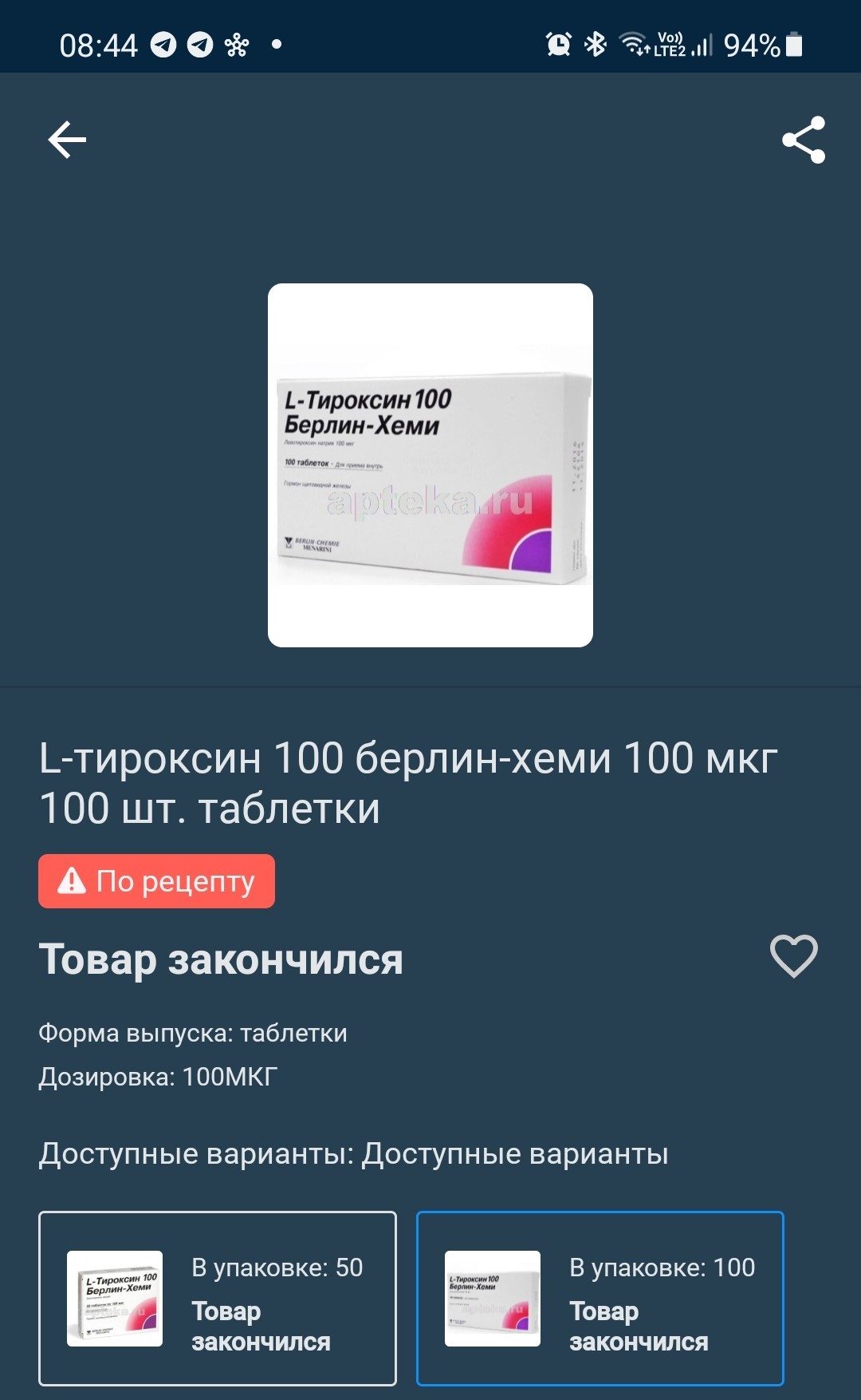 Эутирокс, 100 мкг, таблетки, 100 шт . По рецепту Внешний вид упаковки может отличаться от фотографии Цены на 13 .03 .2022 Цена от 138 ₽ Нет в наличии Смотреть аналоги от 167 руб . 4 .5 на основе 22 отзывов Действующее вещество Левотироксин натрия Производитель Merck Страна Германия Все формы выпуска Эутирокс