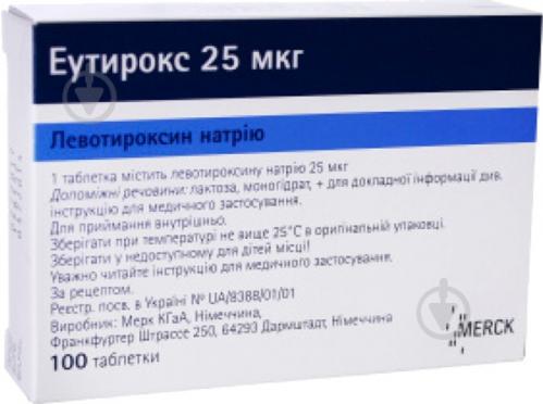 Купить Эутирокс таблетки от заболеваний щитовидной железы по 25 мкг, 100 шт . от Dr . Reddy`s в Украине: Киев, Харьков, Одесса | Аптека24 Эутирокс таблетки от заболеваний щитовидной железы по 25 мкг, 100 шт . Внешний вид товара может отличаться от изображённого Основные свойства Аллергикам с осторожностью Диабетикам с осторожностью Водителям