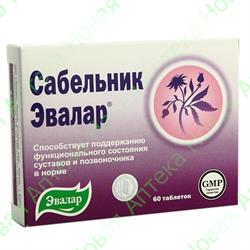 БАД Сабельник от компании Эвалар предназначен для лечения суставов . У меня суставы хрустят периодически, поэтому я приобрела себе данный БАД в качестве профилактики болезней суставов . Считается, что сабельник способен вылечить радикулит, артрит и артроз . Приобретаю обычно сабельник по стоимости 195 рублей в аптеке Эвалар .