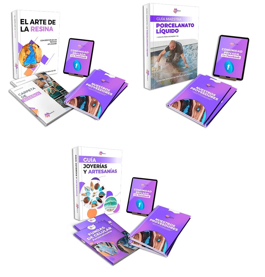 El arte de la resina es uno de los libros de resina epóxica más completos que existe actualmente en el mercado. En el ebook El Arte De La Resina encontrarás todo lo que necesitas para aprender a hacer tus propias creaciones de reina epoxi desde cero.