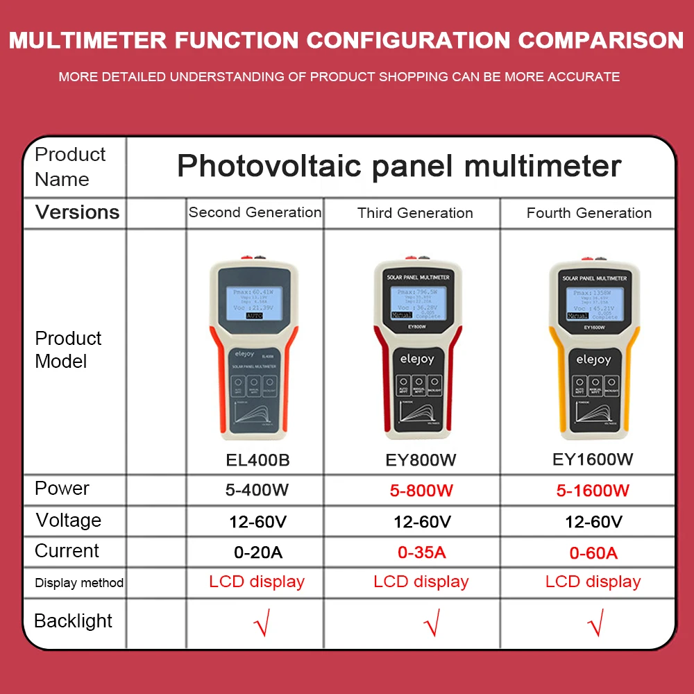 EL400B/ EY800W/EY1600 Photovoltaic Panel Multimeter Auto/ Manual MPPT Detection Solar Panel LCD MPPT Tester Voltage Testing Tool - Купить с бесплатной доставкой