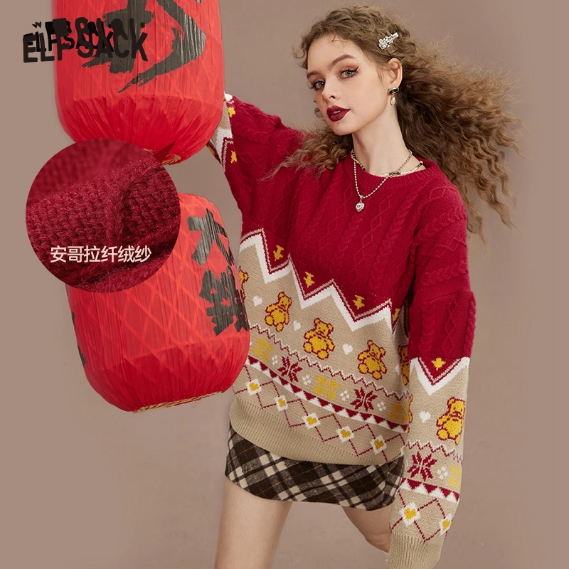 «ELFSACK New Year Red Pullover Sweaters Women 2022 Autumn/Winter Loose Basic Tops» по лучшей цене на рынке! Всего за 64$ (6080рублей)