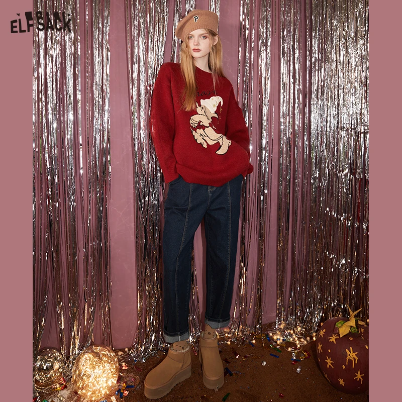 «ELFSACK New Year Red Sweaters Women 2022 Autumn/Winter Warm Basic Daily Tops» по лучшей цене на рынке! Всего за 70$ (6650рублей)