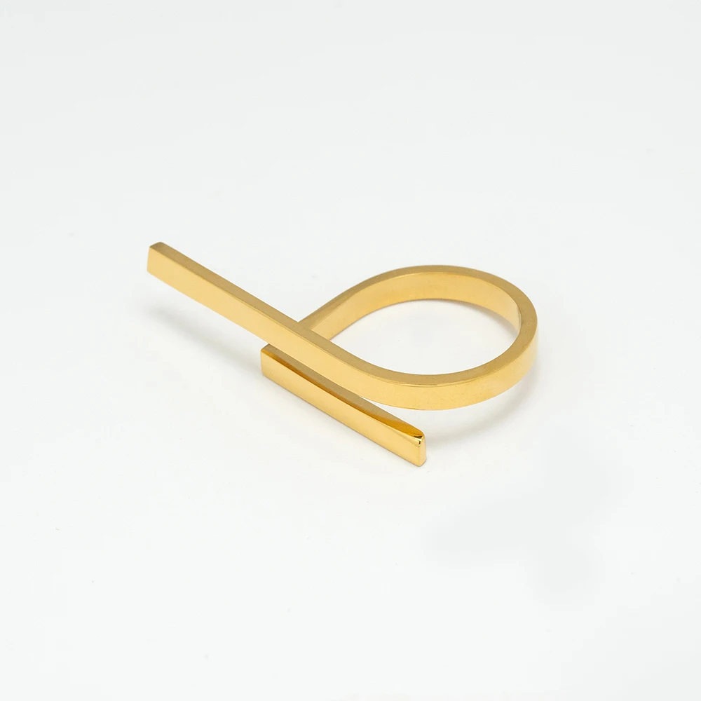 ENFASHION Futuristic Rings For Women Simple Gold Color Stainless Steel Ring Fashion Jewelry Birthday Christmas Gift R214185 - Купить с бесплатной доставкой