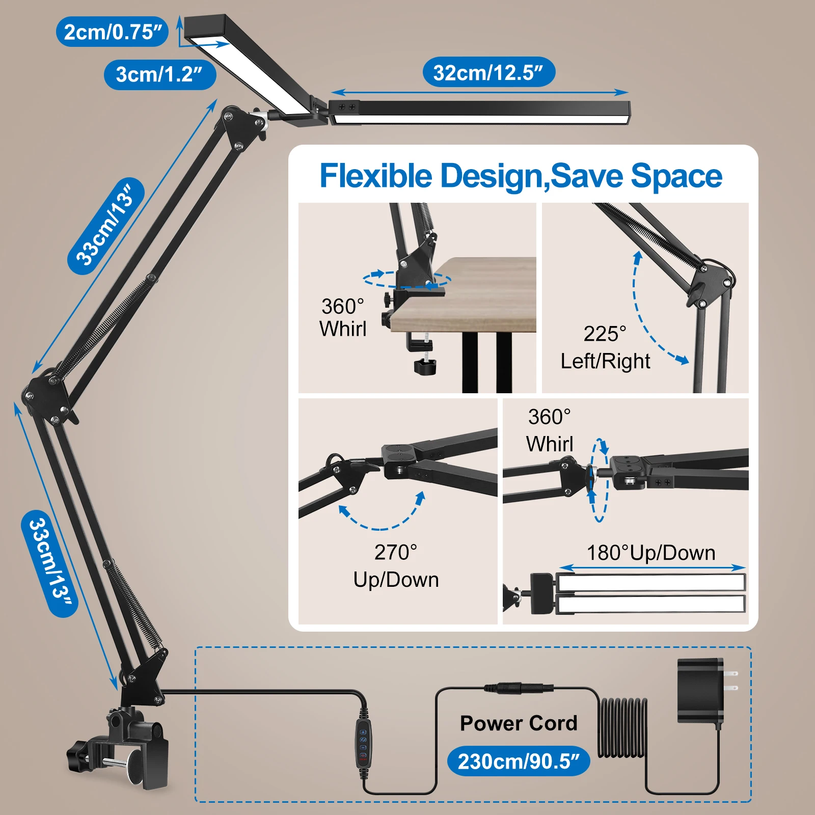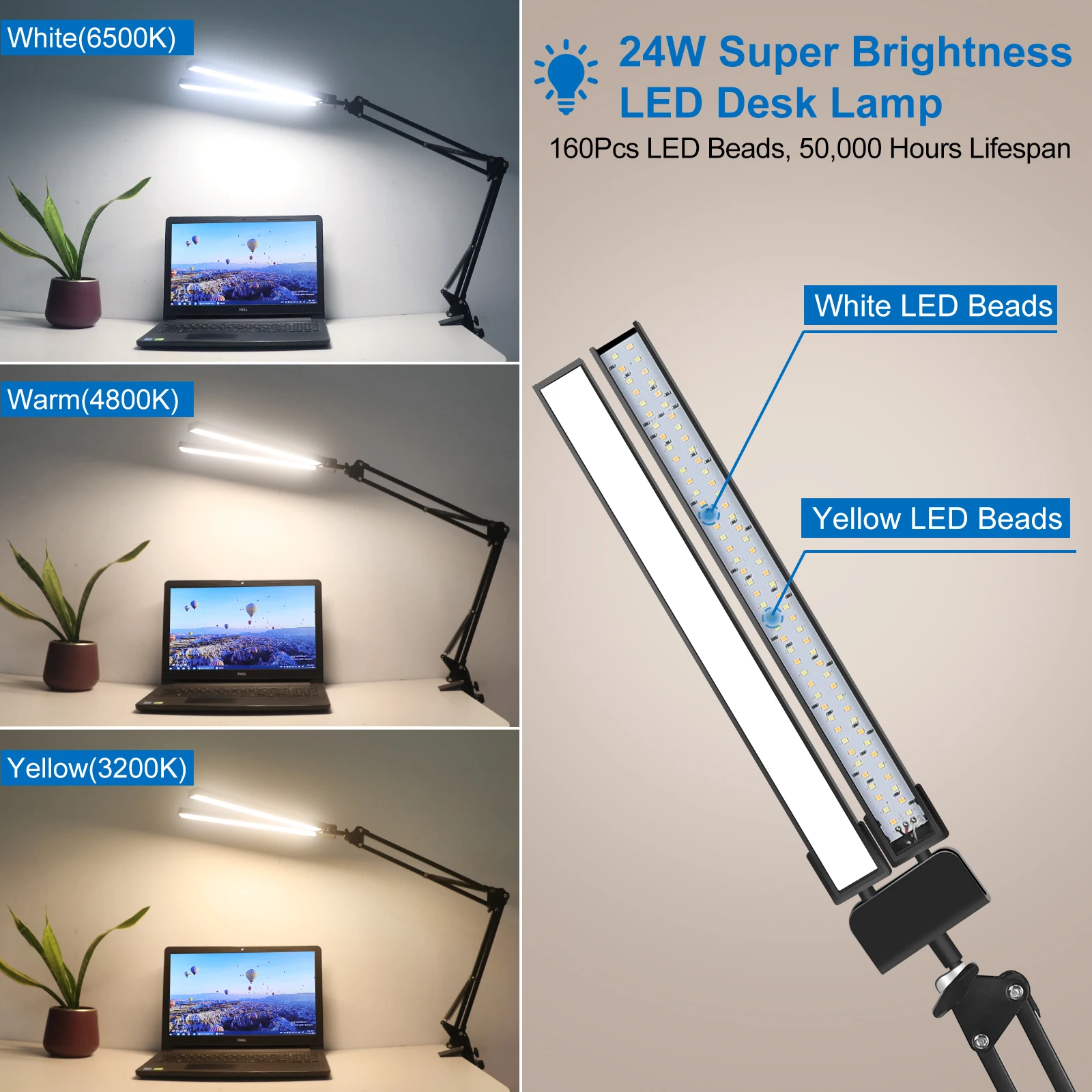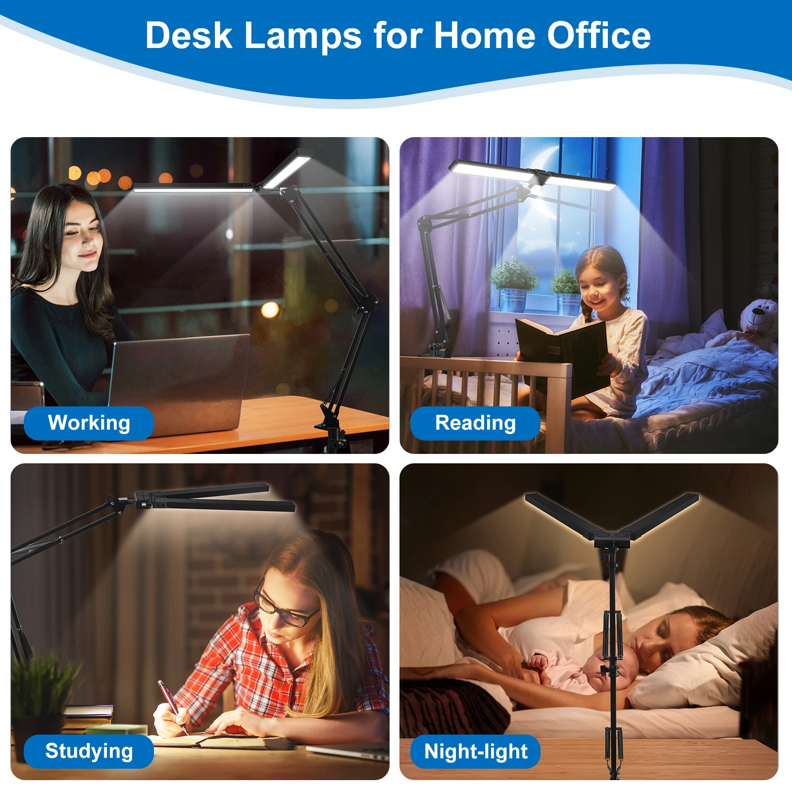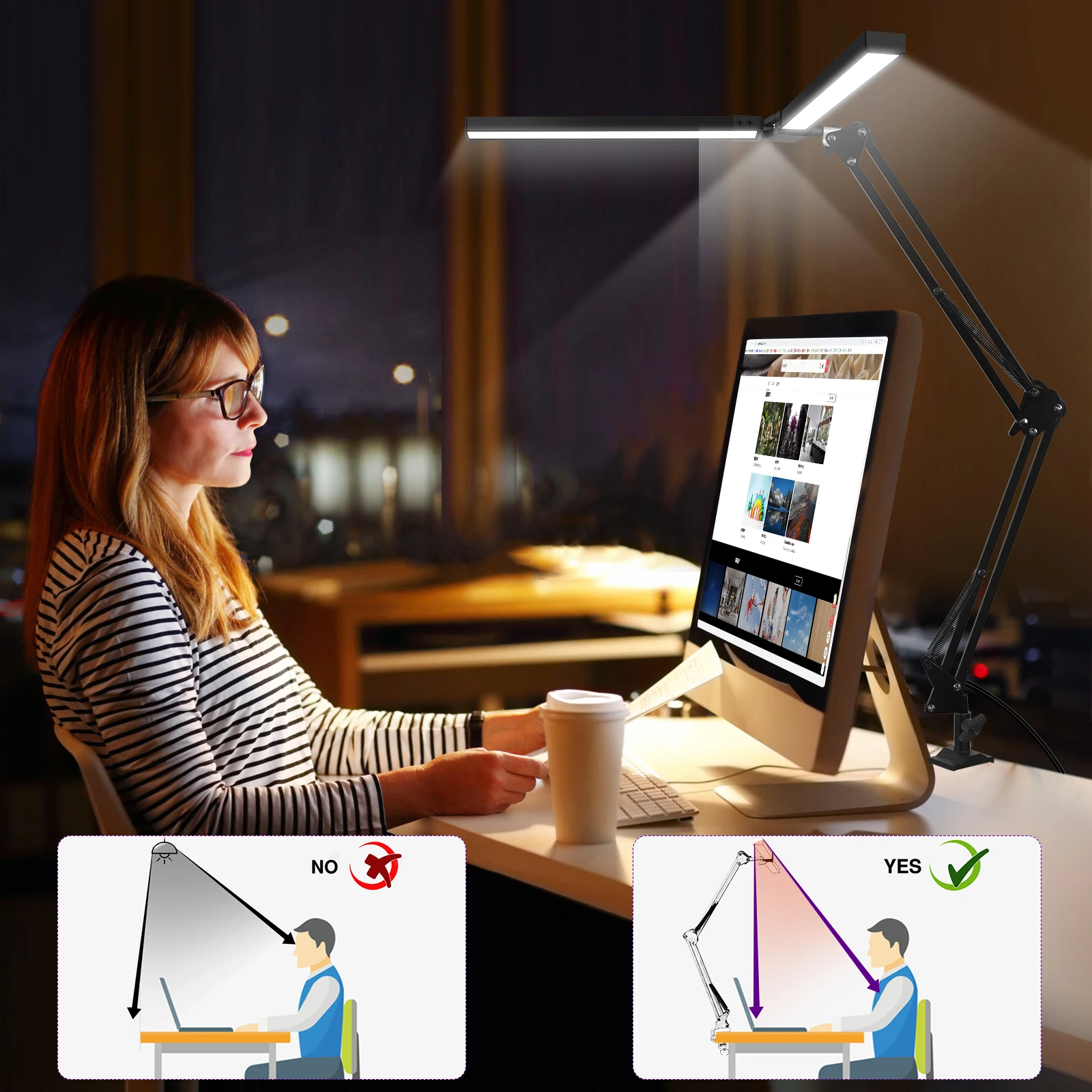 uYCchTRaHere you can buy EOOKU Double Head LED Desk Lamp EU/US Plug 3Color Dimmable Eye-Protection Lamp 24W Computer Screen Light for Home Office Reading with free delivery to your post office.