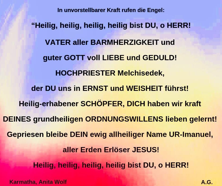 Desto mehr man das durchdenkt und desto mehr man dadurch UR versteht und dadurch auch sich selbst, der uns ja nach Seinem Ebenbild im gerechten Ebenmaß geschaffen hat: Da kann man nur mit bebendem Herzen auf die Knie sinken vor diesem GOTT, dessen Kind man sein darf. Wunder über Wunder tun sich einem auf. Tief verneige ich mich vor DIR o UR! Du bist HEILIG, ÜBERHEILIG!