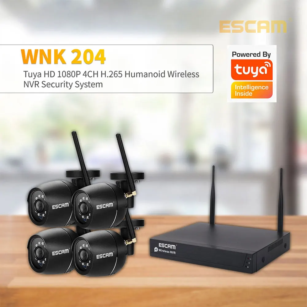 vGccfKNuNrHere you can buy ESCAM WNK204 4CH 1080P Wireless NVR Security System Support Tuya NVR Kit Outdoor Water-proof AI Face Motion Detection IP Camera with free delivery to your post office.