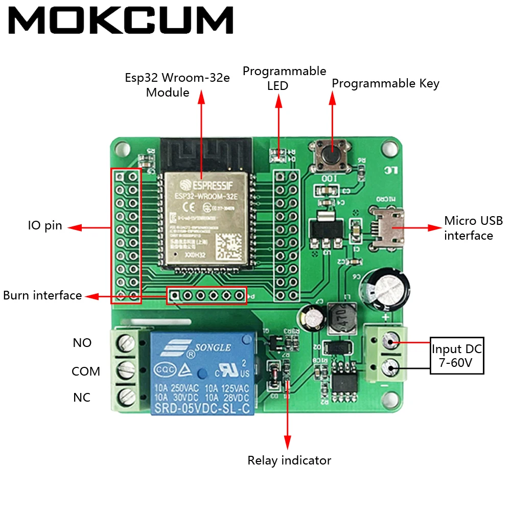 ESP32 Single-Channel Wireless WIFI&BLE Modes Relay Module Development Board ESP32-WROOM DC 5-60V Smart Home Wireless Control - Купить с бесплатной доставкой