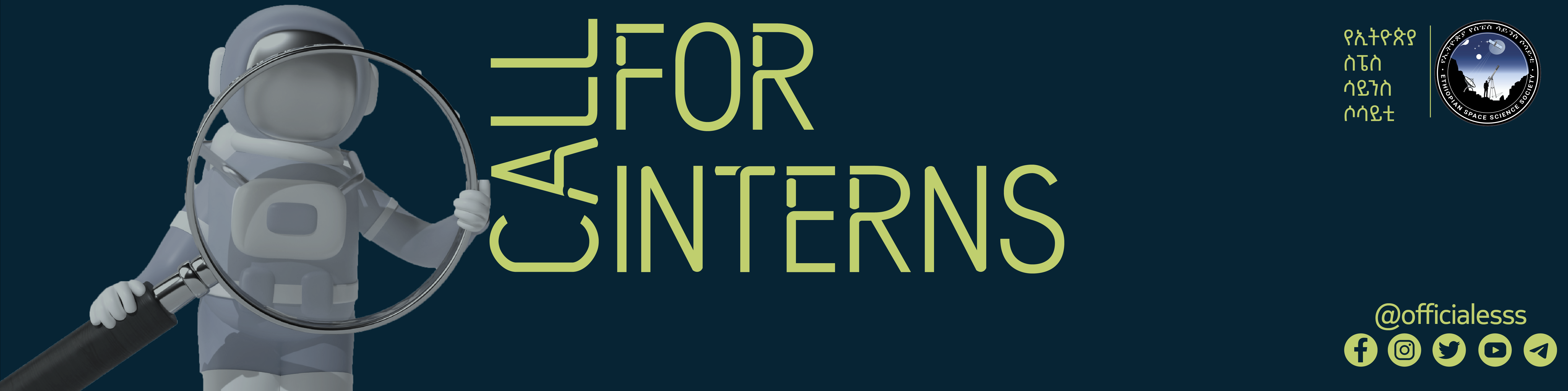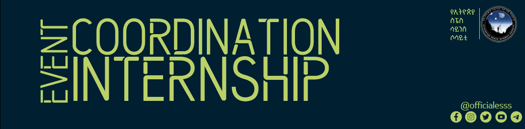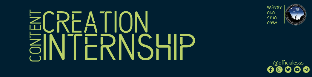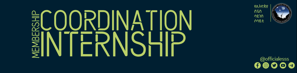 The Ethiopian Space Science Society was established in 2004, with 47 founding members. It is a non-profitable organization constitute of members from Astronomy, Astrophysics, Space Science and technology, and the related field of professionals as well as individual, and institutional members interested in the above fields. The society has more than 15,000 individual members, 30 branch associations, over 58 institutional members, and over 100 Space School Clubs. ESSS is excited to announce its internship program for university students and graduates who are passionate about space science. This program provides an opportunity for interns to gain hands-on experience and make meaningful contributions to ESSS's mission.