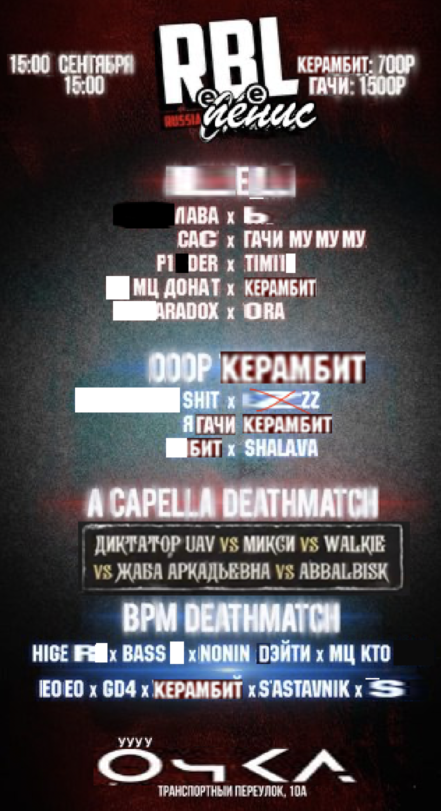 Я честно говоря в ахуе насколько эта афиша бездарно сделана. Т.е очевидно что делал ее условный спэйсдиллер или сойер, но блять почему так? К чему эти глич эффекты аля у моей бабушки сломался телевизор, почему блять названия "стиля" батлов размыты? Я и так нихуя не вижу а тут блюр накинут 150% пиздец охуенный дизайн.