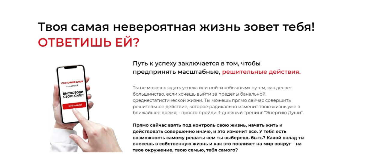 Именно этим я и занимаюсь на тренинге «Энергия Души»