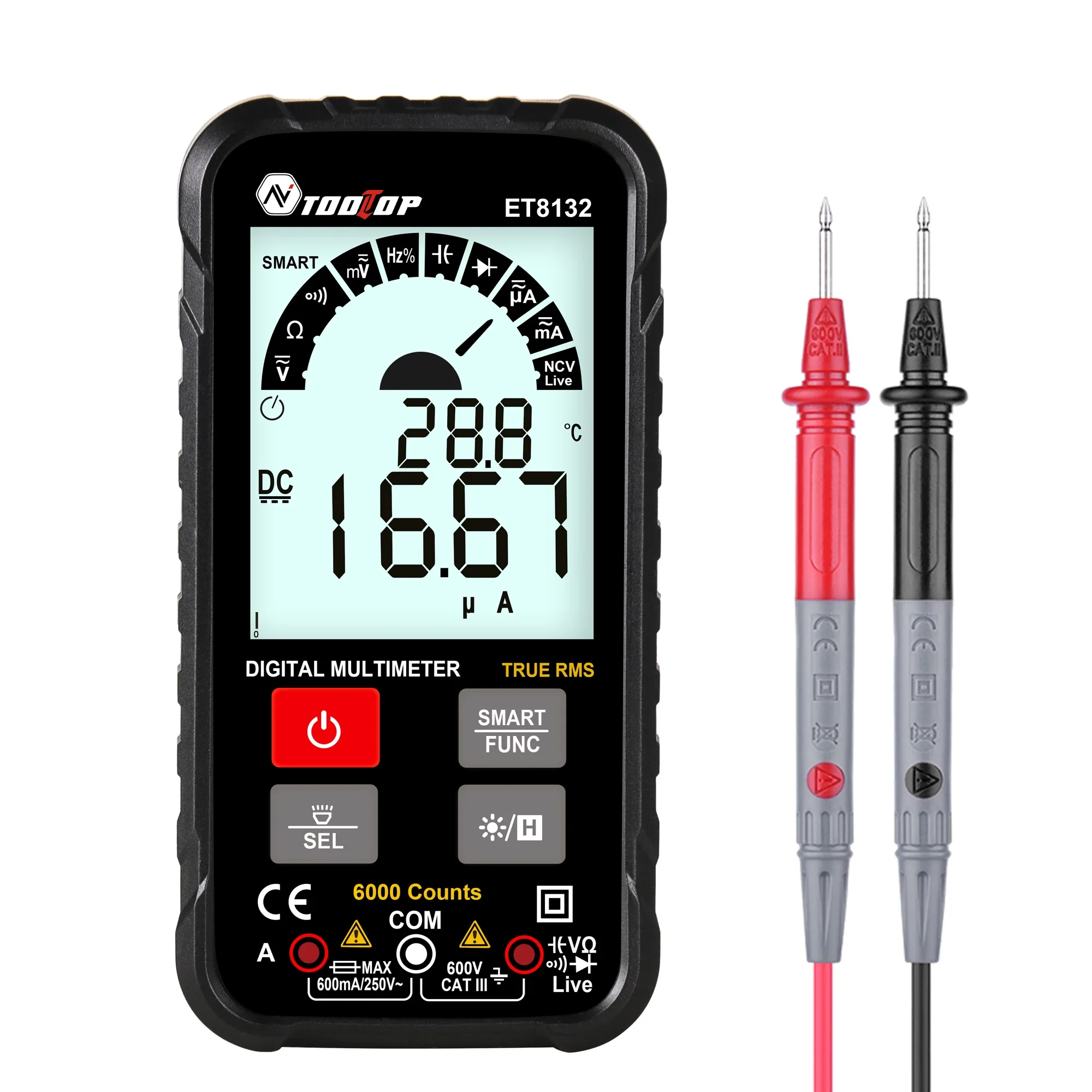 ET8132 6000 Counts True RMS Digital Multimeter 2.8Inch Automatic Identification & Measurement AC DC Voltage Current Measure - Купить с бесплатной доставкой
