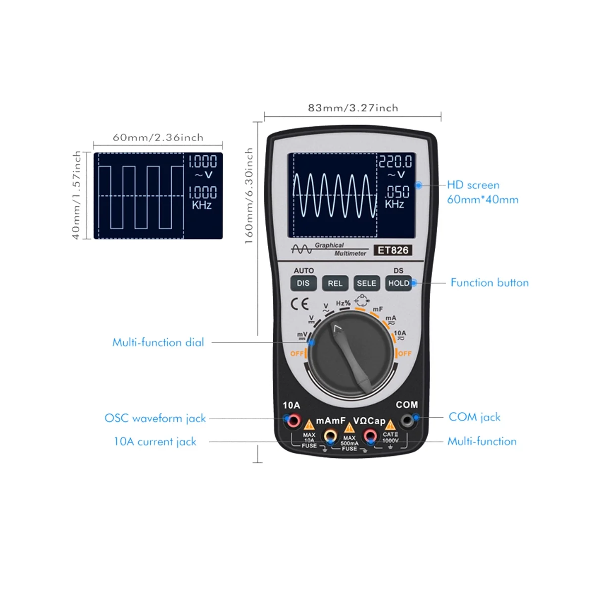 ET826 2 in 1 LED Oscilloscope Multimeter Handheld Color Screen Scope Digital Storage Oscilloscope Digital Multimeter - Купить с бесплатной доставкой