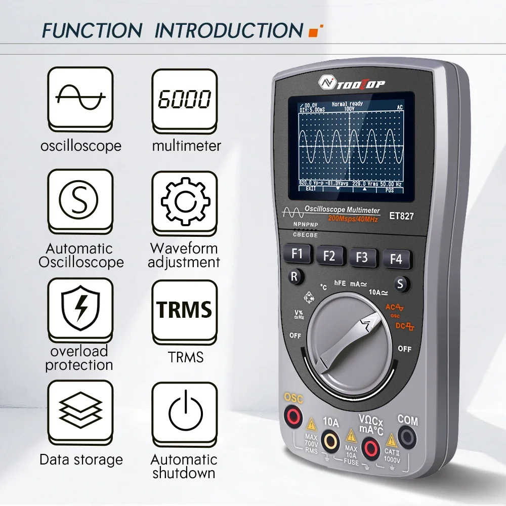"ET827 40MHz 200Msps/S Digital Oscilloscope True RMS 6000 Counts Multimeter Large Capacitor hFE Meter Electronic Oscilloscope" * Buy Now With Free Shipping Just For $64