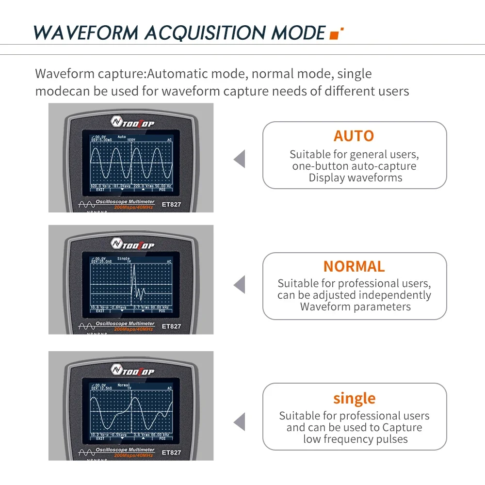 LQhXhqsHGOHere you can buy ET827 40MHz 200Msps/S Digital Oscilloscope True RMS 6000 Counts Multimeter Large Capacitor hFE Meter Electronic Oscilloscope with free delivery to your post office.
