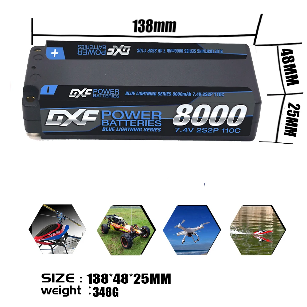 «(EU)DXF Lipo 2S 7.4V Battery 8000mAh 110C 5mm Bullet Graphene Racing Series HardCase For RC Truck Evader BX Truggy 1/10 Buggy» по лучшей цене на рынке! Всего за 61$ (5795рублей)