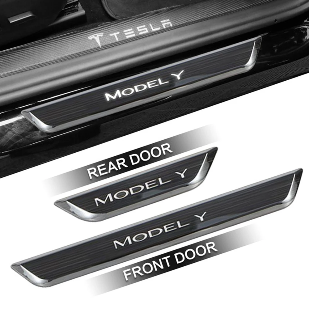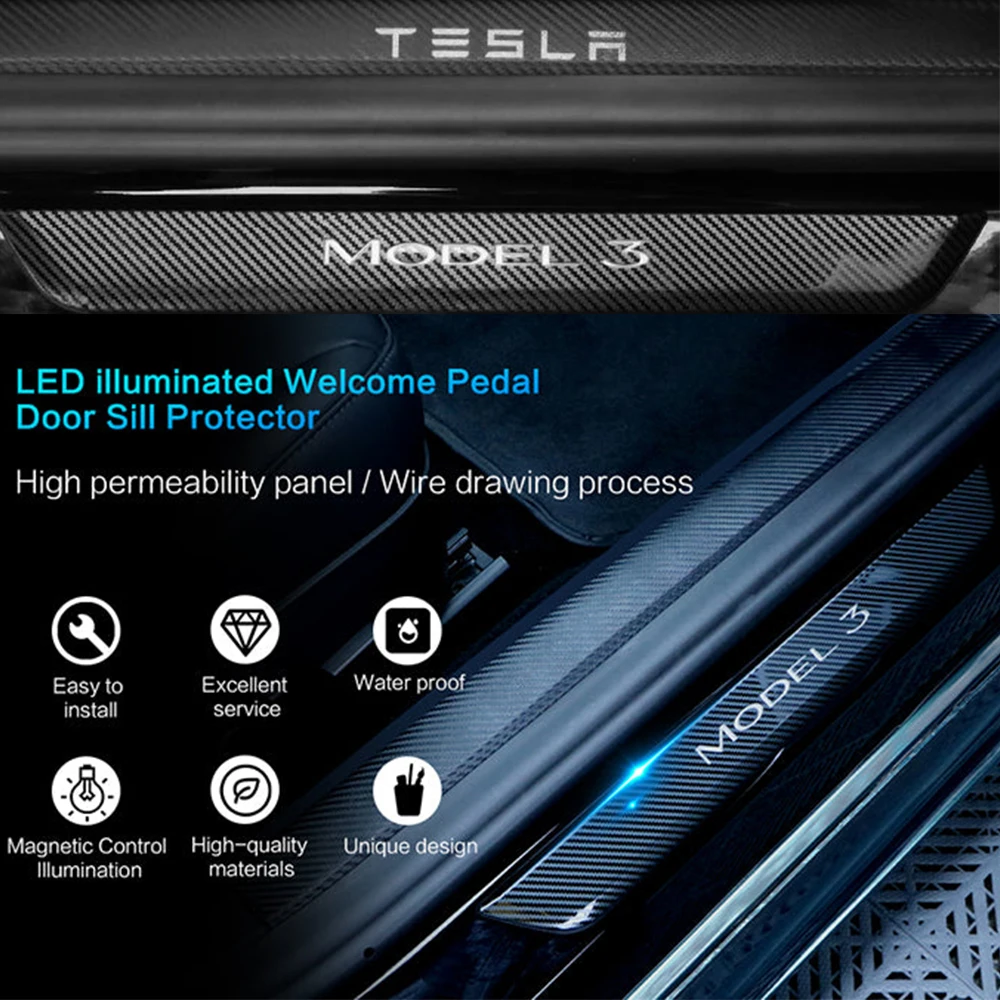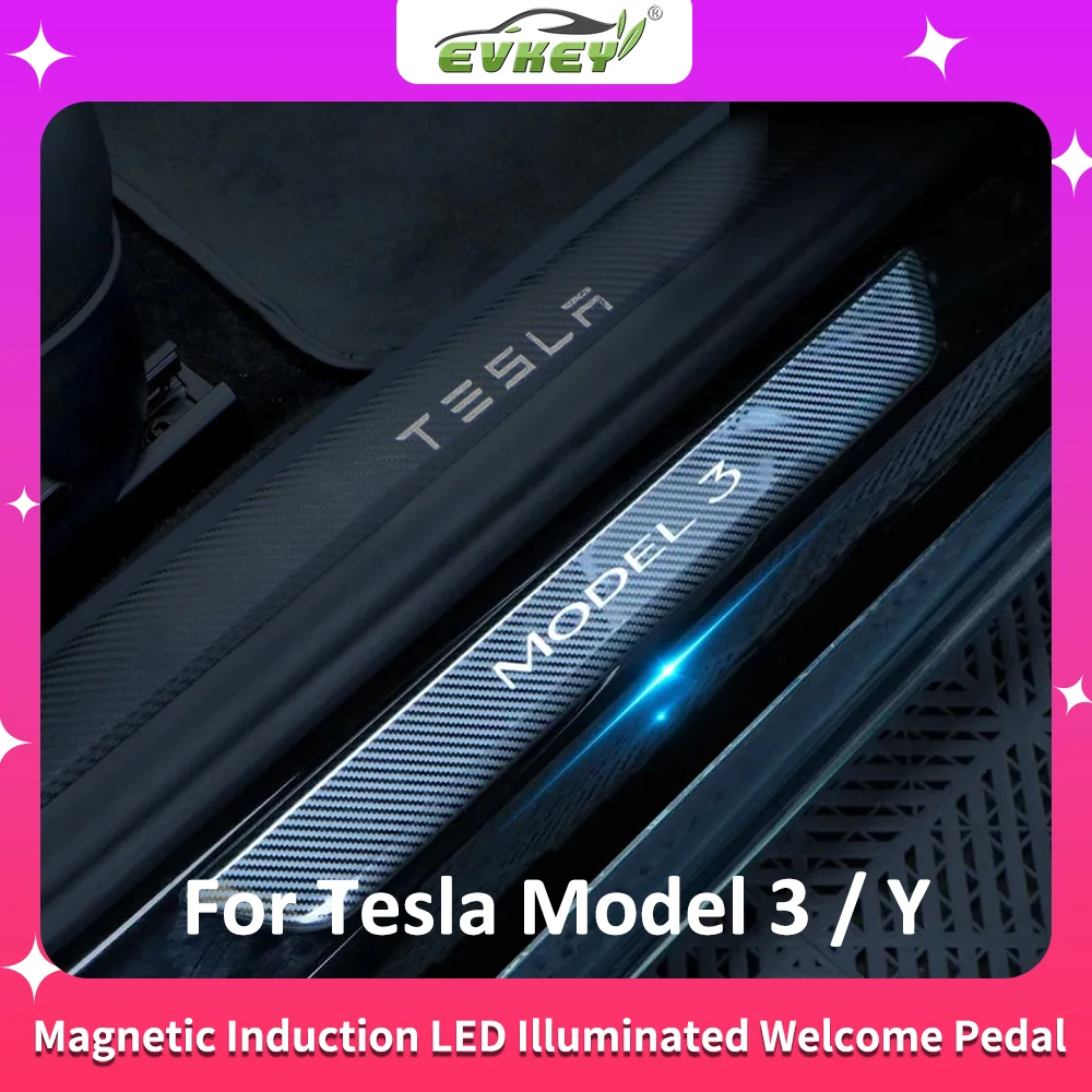 EVKEY For Tesla Model 3 Model Y Car Threshold Bar Magnetic Induction LED Luminous Illuminated Welcome Pedal Auto Accessories - Купить с бесплатной доставкой