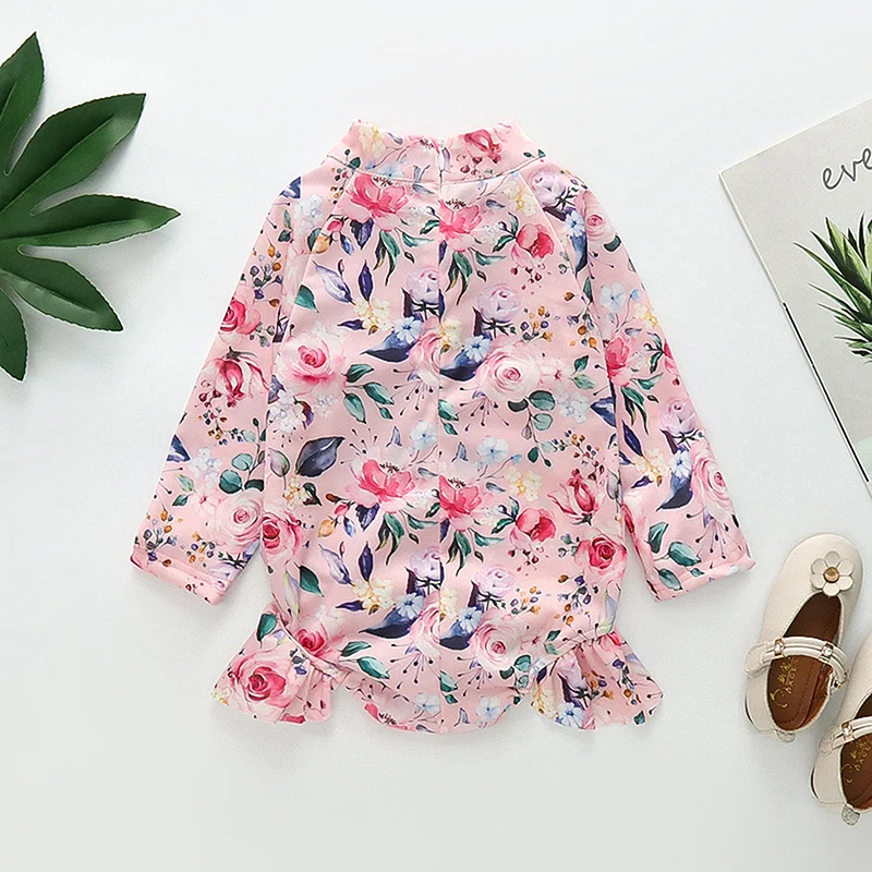 EWODOS Toddler Baby Kids Girls Rash Guard Swimsuit Bodysuits Floral Print Zipper Long Sleeve Ruffles Sun Protection Swimwear - Купить с бесплатной доставкой